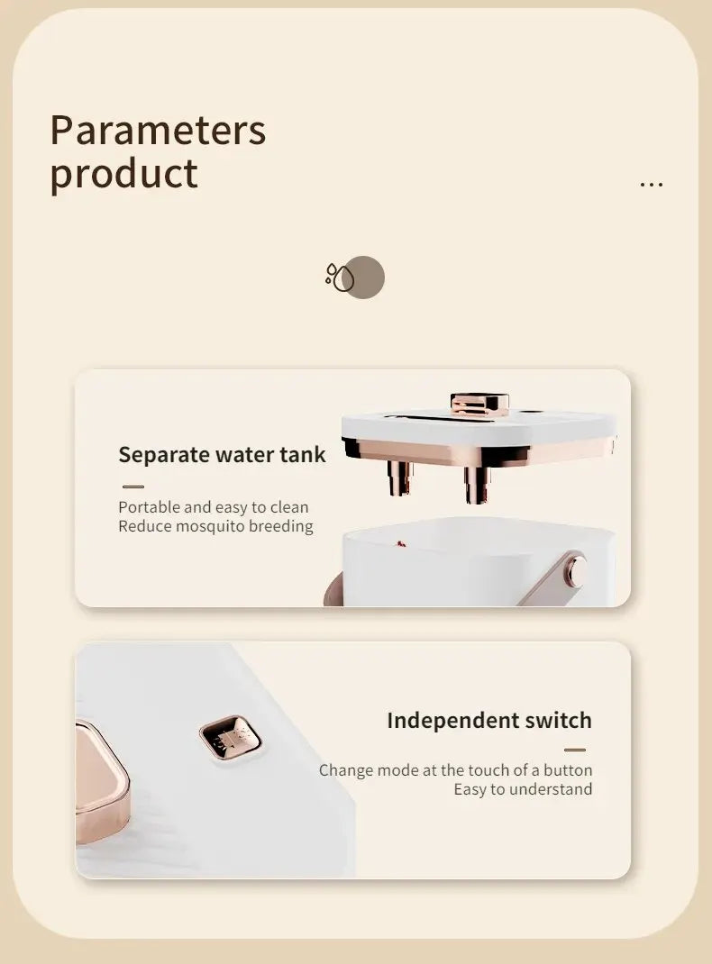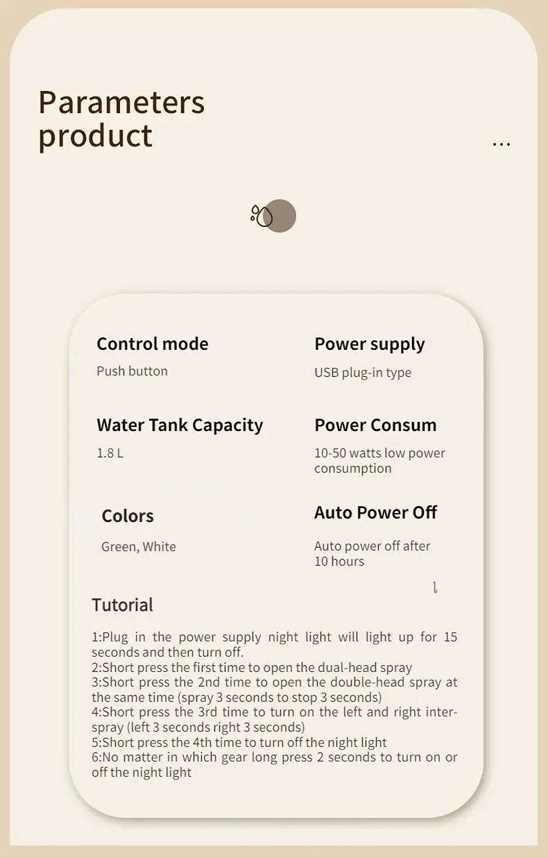 The AtmosRain Humidifier offers a generous 1.8L capacity paired with dual nozzles to efficiently enhance indoor air moisture. Designed for desktop use, it also functions as an essential oil diffuser, providing soothing aromatherapy benefits. Integrated night light features create a calming ambiance, ideal for relaxation or sleep. Its large water tank ensures prolonged operation, making it perfect for improving air quality in your living or working space with expert precision and convenience.